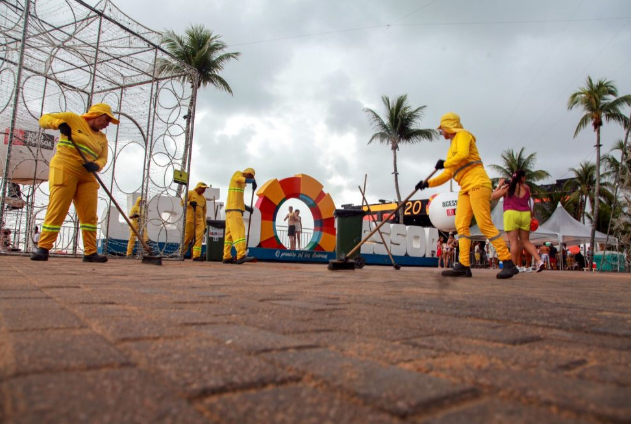 Durante a festa de Réveillon, no domingo (31), os agentes de limpeza fizeram a varrição e coleta dos resíduos, além de catação na faixa de areia. O evento contou com o apoio de 30 colaboradores da Emlur. Ao fim dos festejos, as turmas da operação especial iniciaram as ações de limpeza.