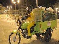 Para realizar a coleta de lixo, sem comprometer o tráfego de pedestres na orla de João Pessoa, durante os shows do Réveillon, a Autarquia Especial Municipal de Limpeza Urbana (Emlur) utilizou triciclos de carga, pilotados por agentes de limpeza especializados na realização deste tipo de serviço.