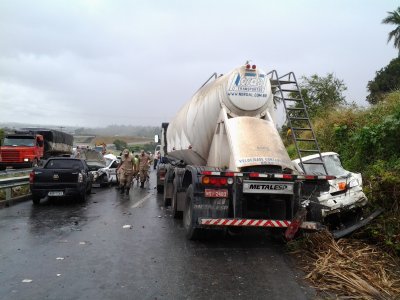acordo com a PRF, 14 veículos se envolveram no acidente e três pessoas