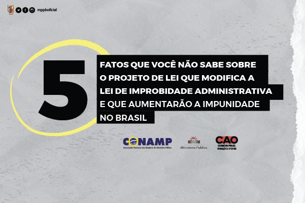 Por conta disso, a Conamp preparou um material com cinco fatos considerados críticos no projeto de lei, por enfraquecerem o combate ao enriquecimento ilícito, à prática de atos que causam lesão ao patrimônio público e à prática de atos violadores dos princípios constitucionais da legalidade, moralidade, impessoalidade, probidade e publicidade. O material recebeu o apoio do MPPB e da APMP.