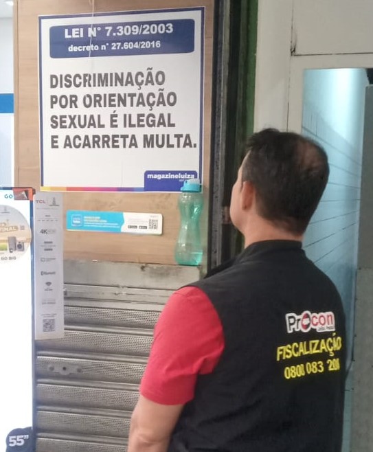 Mais três lojas, desta vez no Centro da Capital, foram autuadas pelo Procon-JP em fiscalização nesta quinta-feira (29). A inspeção aos estabelecimentos comerciais é resultado de parceria com a Coordenadoria de Promoção à Cidadania LGBT e Igualdade Racial e verifica o cumprimento da Lei Estadual 7.309/2003 (atualizada pela Lei 10.909/2017 e pelo Decreto 27.604/2006), que prevê a fixação de cartazes contra o preconceito e a discriminação em virtude da orientação sexual e identidade de gênero. Ao todo, 15 locais foram autuados desde o dia 8 de agosto.