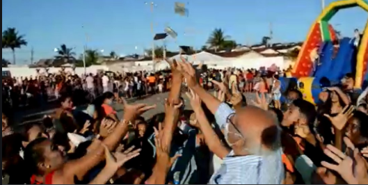 O ex-deputado estadual Biu Fernandes acabou caindo no momento em que jogava dinheiro para o alto para que crianças pegassem, nessa terça-feira (12), em uma festa na cidade de Alagoinha, no Brejo paraibano.
