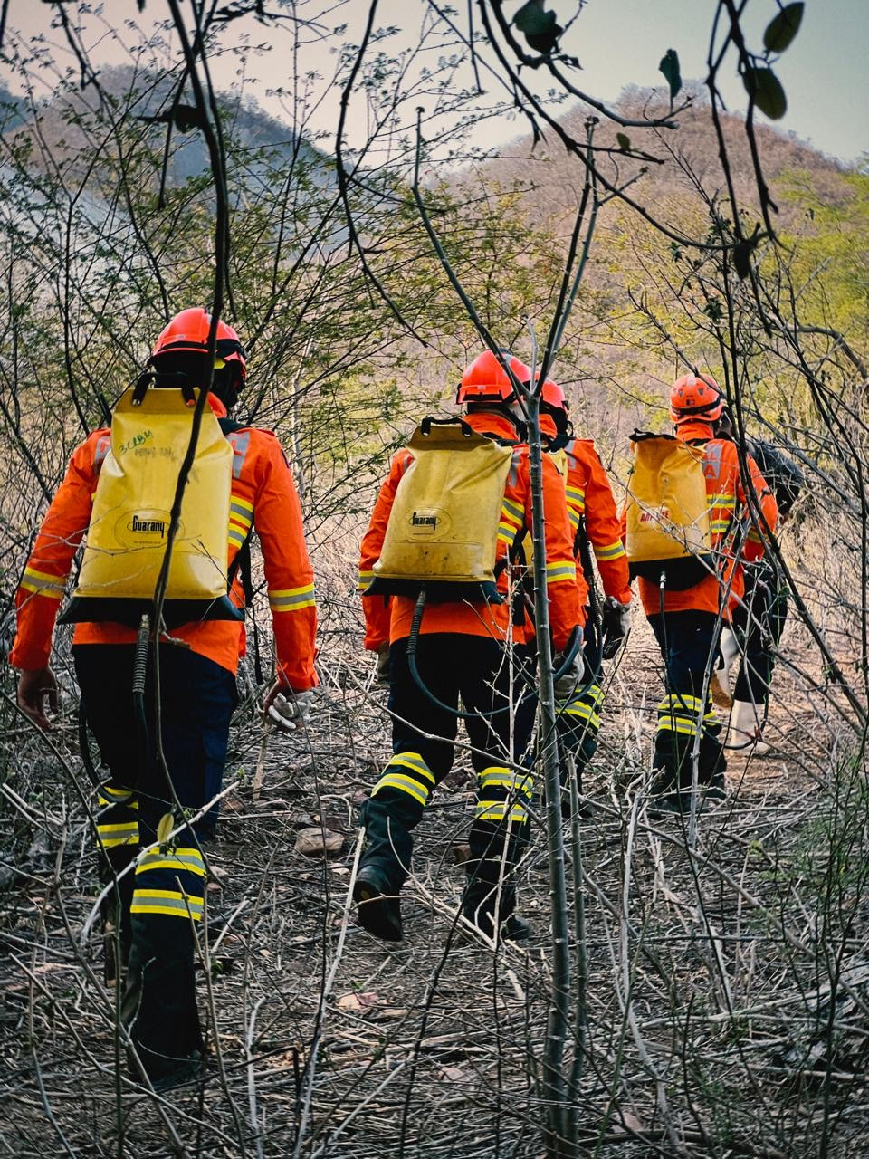 O Corpo de Bombeiros atua em operação integrada com a Polícia Militar, Polícia Civil, equipe técnica da Secretaria do Meio Ambiente e Sustentabilidade (Semas) e brigadistas do ICMBio para conter as chamas e proteger a vegetação local.