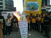Em todo o Brasil, funcionários dos Correios fizeram passeatas para chamar a atenção da população sobre o movimento grevista e as reivindicações da categoria nesta sexta-feira (23). Em João Pessoa, o Sindicato dos Trabalhadores em Correios (Sintcom) aderiu ao evento e reuniu profissionais para caminhar pelo Centro da cidade. Durante o protesto, funcionários dos Correios “queimaram” a presidente Dilma Rousseff em um caixão, no Ponto Cem Réis.