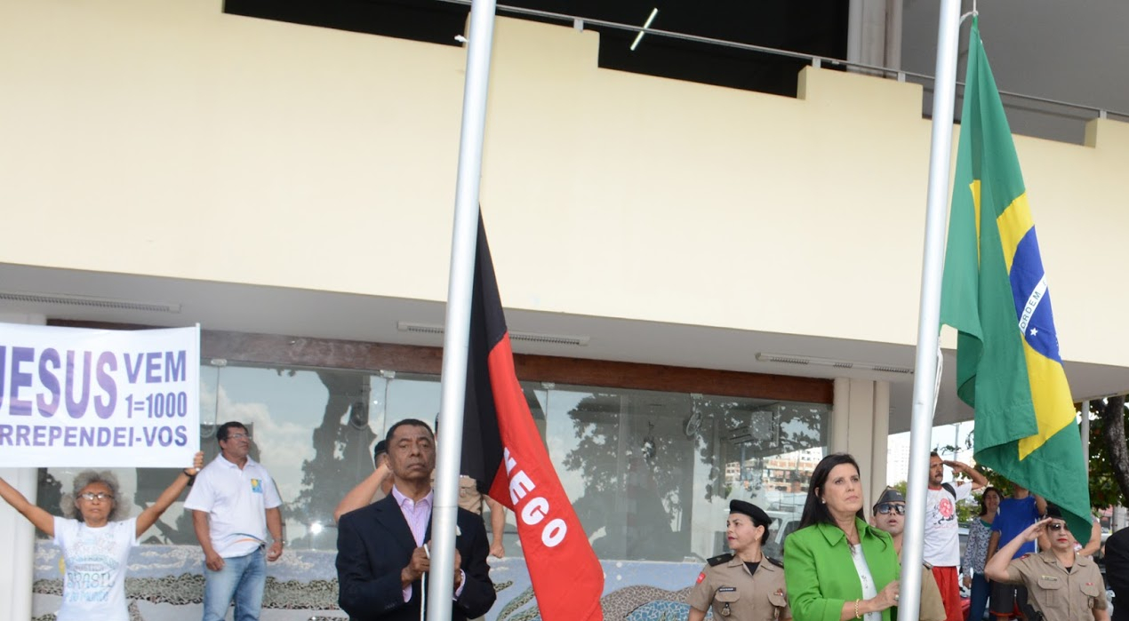 08h15 – Hasteamento do Pavilhão Nacional, Estadual e Municipal, acompanhado pela Banda 05 de Agosto