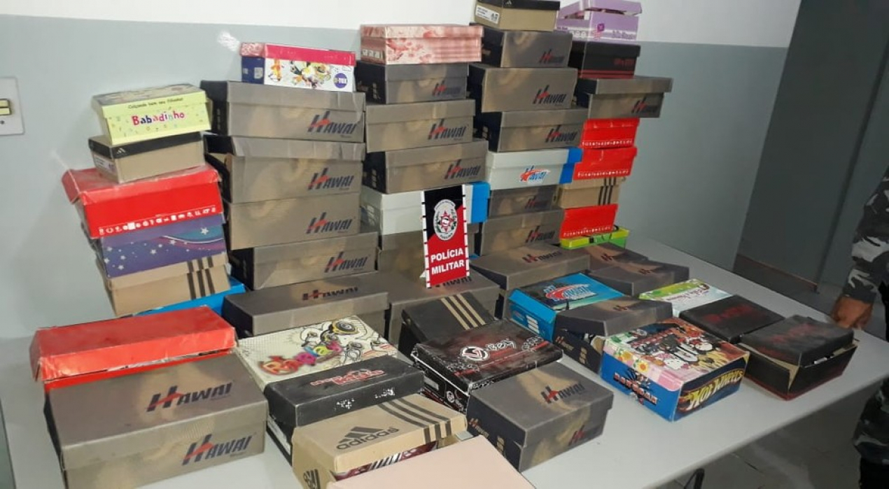 As caixas com os sapatos furtados estavam dentro de uma casa, onde o homem de 25 anos foi preso em flagrante. Ele já responde por tráfico de drogas e é suspeito de homicídio no bairro do Marcos Moura. O suspeito alegou que tinha comprado os calçados, sem revelar a quem, e que sabia que eram furtados.