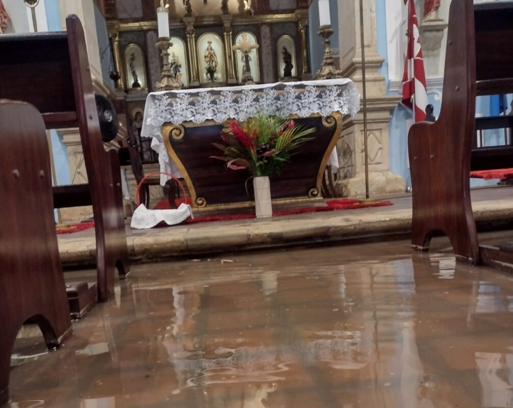 As fortes chuvas que atingem o Litoral da Paraíba têm causado transtornos e um dos principais ocorreu na cidade do Conde, com o alagamento da Igreja Matriz de Nossa Senhora da Conceição, uma construção centenária.