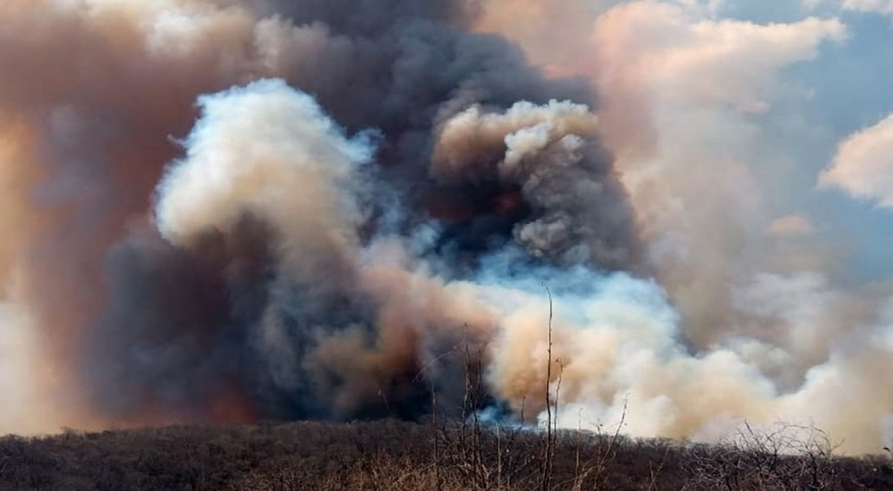Ele explicou que as condições climáticas, como alta temperatura e baixa umidade relativa do ar, além da topografia da região, com muitas serras, prejudicam o trabalho de combate às chamas. O tenente-coronel destacou o incêndio, que tem vários focos, segue com chamas altas e está temporariamente fora de controle.