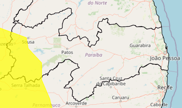 O Instituto Nacional de Meteorologia (Inmet) emitiu um alerta de chuvas intensas para 35 municípios do Sertão da Paraíba. O aviso classificado como de perigo potencial começou a valer na manhã deste domingo (18) e segue até as 9h da segunda-feira (19).