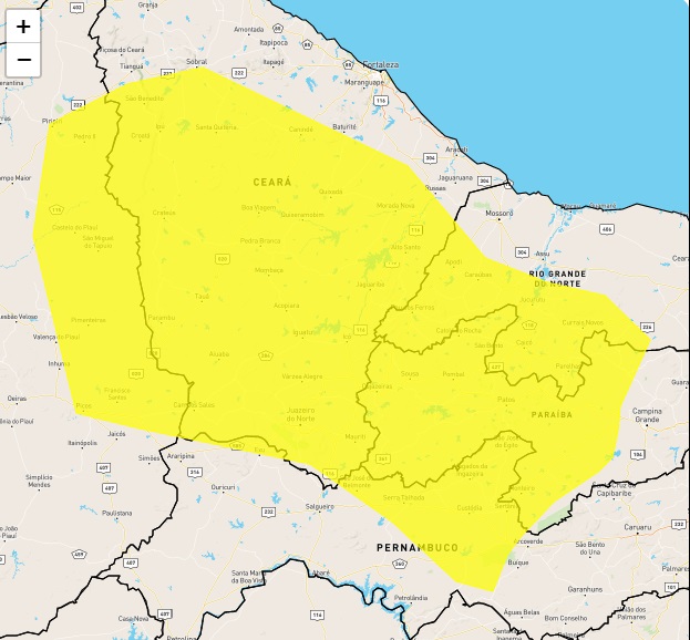 O Instituto Nacional de Meteorologia (Inmet) emitiu um alerta amarelo de baixa umidade para 133 cidades da Paraíba.