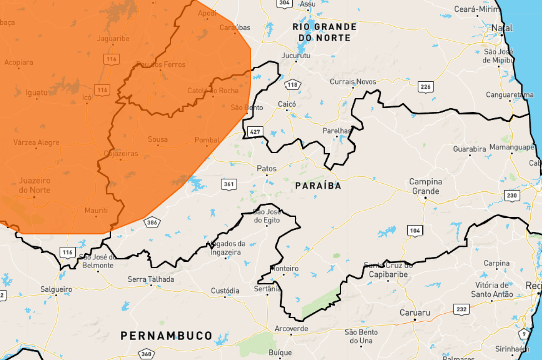 O Instituto Nacional de Meteorologia (Inmet) emitiu nesta quinta-feira (23.02) um alerta laranja de perigo de chuvas intensas para 50 municípios da Paraíba. O aviso é válido até às 10h da sexta-feira (24).