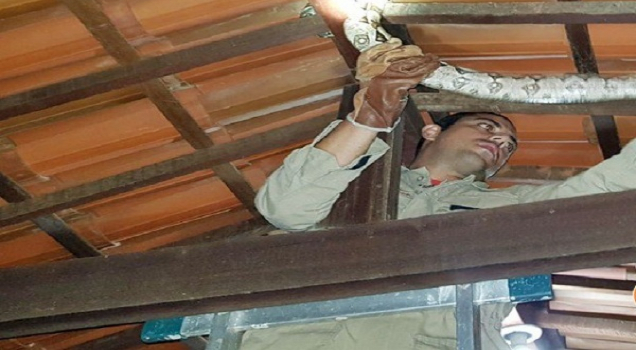 Houve dificuldade na retirada já que a jiboia estava entre as madeiras do teto.