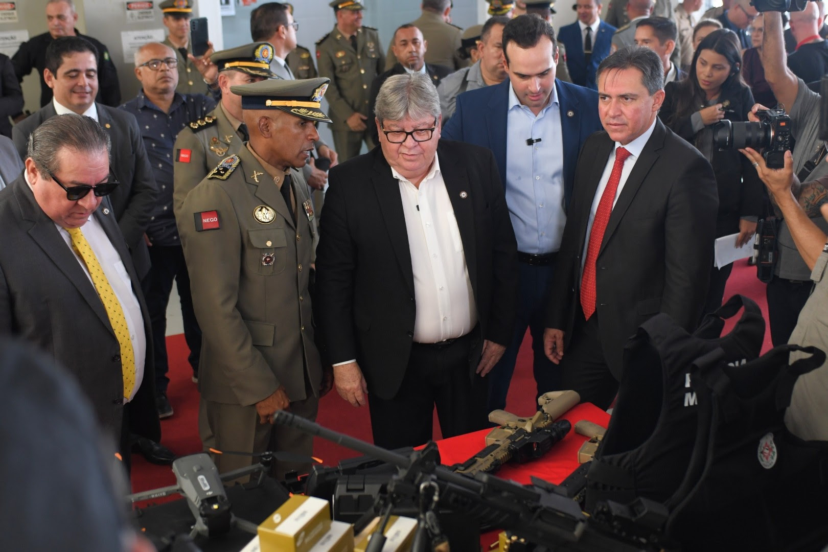 Dentre os equipamentos entregues estão fuzis, metralhadoras, submetralhadoras, pistolas, coletes balísticos, bonés anti-impacto, capacetes para o Rotam e BPTran, drones, etilômetros, uniformes, notebooks e computadores. Na solenidade, ainda foram entregues várias medalhas a autoridades civis e militares, a profissionais que atuam em parceria com a corporação e aos integrantes da Polícia Militar e demais Forças de Segurança. O gestor estadual também foi homenageado com uma medalha em agradecimento aos investimentos e capacitação da Polícia Militar.