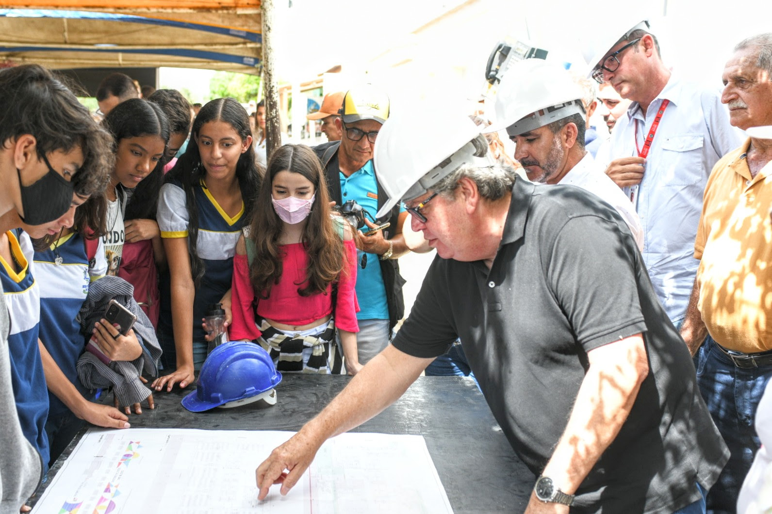 A visita técnica à construção da Escola Municipal Tertulina Nóbrega da Silva contou com apresentações culturais e com a presença de pais de alunos, alunos, professores e funcionários.