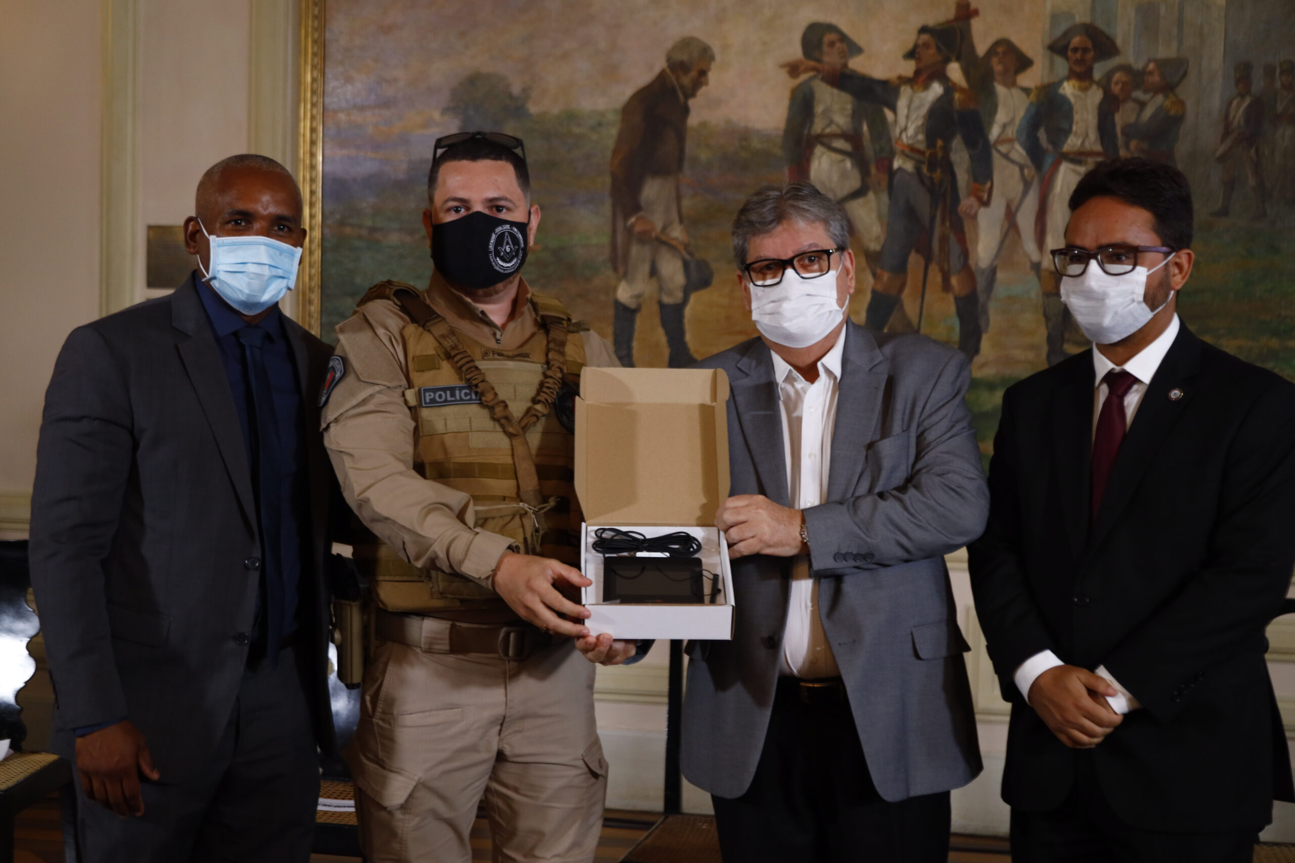 O governador João Azevêdo entregou, nesta terça-feira (9), no Palácio da Redenção, em João Pessoa, equipamentos biométricos para identificação civil de pessoas privadas de liberdade. São 72 kits, compostos por webcam, leitor biométrico, scanner digital, iluminação e tripé, que serão distribuídos nas 68 unidades prisionais para elaboração de um banco de dados biométricos das pessoas privadas de liberdade, facilitando sua identificação e proporcionando a emissão de documentação civil. Na ocasião, também foi promulgada pela Assembleia Legislativa da Paraíba a Proposta de Emenda à Constituição (PEC), de autoria do Governo do Estado para criação da polícia penal.