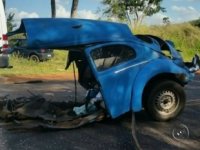 De acordo com informações da Polícia Militar, o jovem Bruno Henrique Espinosa da Costa, de 18 anos, perdeu o controle da direção em uma curva e foi atingido na lateral por outro carro que vinha na direção contrária. O impacto foi tão forte que o Fusca que ele dirigia partiu-se ao meio. Segundo a PM, ele não tinha habilitação.