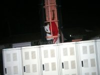 na noite deste domingo (11), subindo na torre da antena da oi que fica na