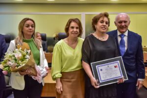 A homenageada afirmou que recebe a Cidadania Paraibana com muita honra e com muita responsabilidade, pois, assim como, adotou a Paraíba para viver e constituir família, também se sente adotada por este estado. “Recebo com muita alegria e gratidão. Gratidão, primeiramente, a Deus, pelo dom da vida, e em seguida à Assembleia Legislativa, através do presidente Adriano Galdino, que me concedeu essa honraria, que foi aprovada pelos demais deputados. Fico muito feliz. É o reconhecimento de todo o serviço prestado ao longo desses anos. Já tenho raiz. Meus filhos são paraibanos e agora me tornei paraibana também. Então, é um momento de muita alegria, de muito engraçamento e eu agradeço bastante”, comemorou a homenageada.