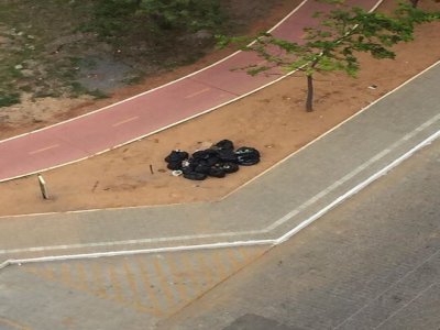 Imagens do alto de prédios, realizadas por internautas, mostram as sacolas se acumulando no local, atraindo insetos e moscas, e sem previsão de recolhimento.