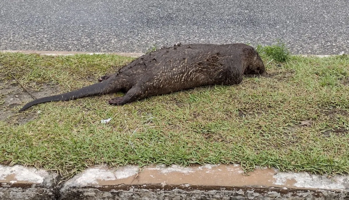 A Polícia Ambiental de João Pessoa fo acionada na avenida Sérgio Guerra, principal do bairro dos dos Bancários, em João Pessoa, após populares encontrarem uma lontra morta.