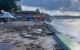 A maré alta que fez com que o mar avançasse, acabou destruindo parte de uma praça localizada na Baía da Traição, litoral norte paraibano.