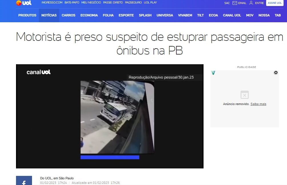 O caso do motorista de ônibus preso na Paraíba suspeito de estuprar uma passageira ganhou repercussão na mídia nacional. O portal UOL trouxe uma reportagem completa sobre o caso na sua página principal essa semana.