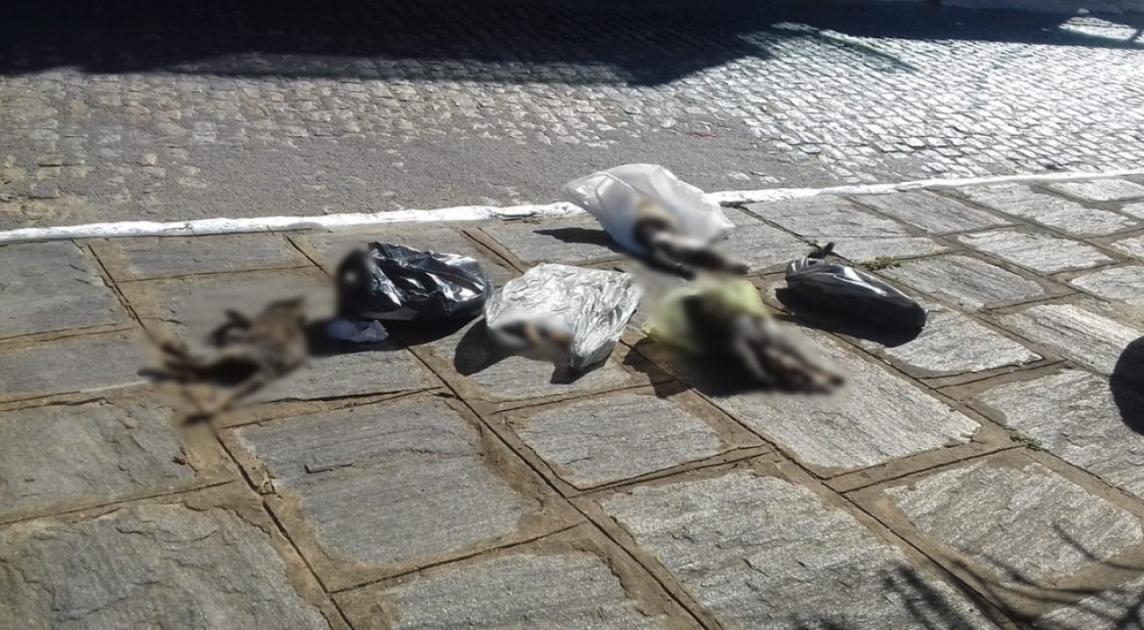 As imagens dos animais mortos começaram a repercutir nas redes sociais desde a manhã. Na foto registrada pelo estudante Yanderson Lira, estão seis dos gatos que foram encontrados mortos no Centro da cidade. A Polícia Civil ainda não foi notificada do caso.