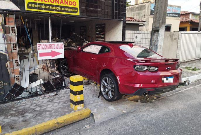Um carro de luxo invadiu e destruiu a fachada de um salão de beleza, na madrugada deste domingo (27), na orla de João Pessoa, Capital da Paraíba. O acidente aconteceu no cruzamento entre a avenida Cairu com a rua Paulino Pinto.
