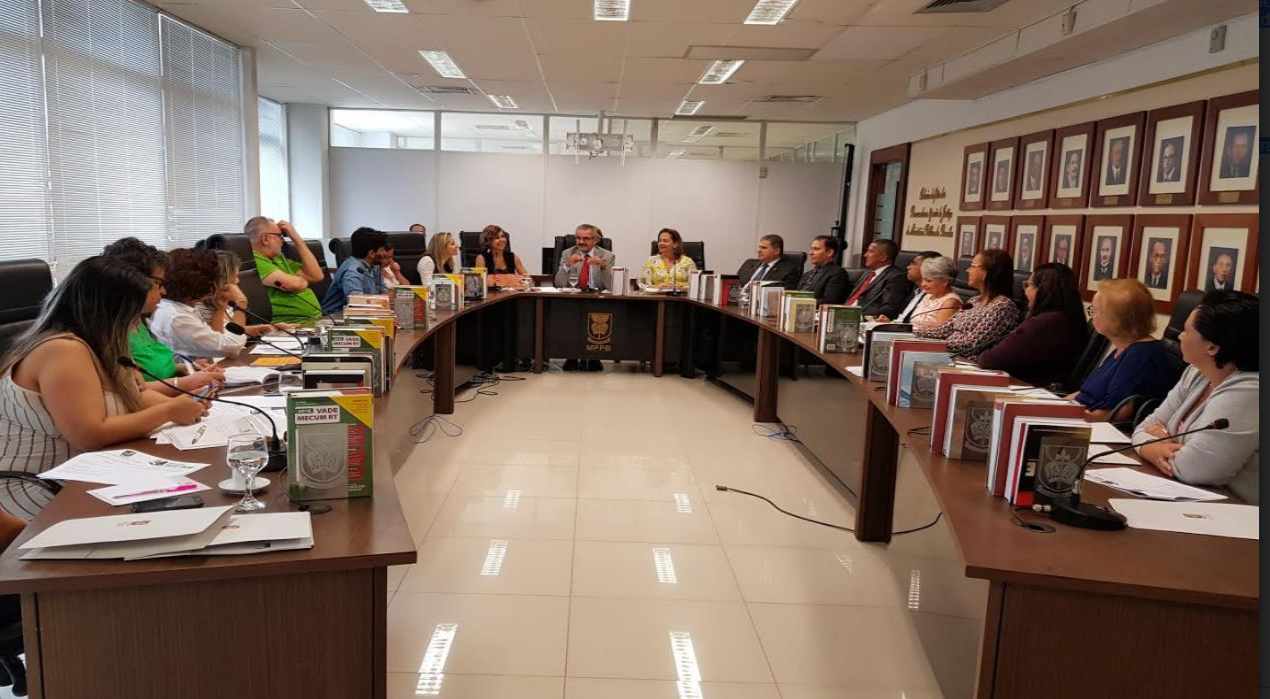 O 2º subprocurador-geral de Justiça e coordenador do Núcleo de Políticas Públicas do MPPB, Valberto Cosme de Lira, conduziu a reunião, ao lado dos promotores de Justiça Elaine Cristina Pereira (CAO da Cidadania), Rosane Araújo e Dulcerita Alves (Mulher), Jovana Tabosa (Saúde), Ricardo Medeiros (Tutela Coletiva do Sistema Prisional) e Luis Nicomedes (Educação).