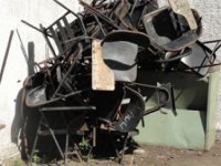 A área externa onde as crianças brincam tem muito barro, vegetação e até uma galeria e um esgoto abertos. Carteiras enferrujadas também estão amontoadas junto ao muro, aguardando que a empresa especializada no tombamento faça o transporte para um depósito do Estado.
