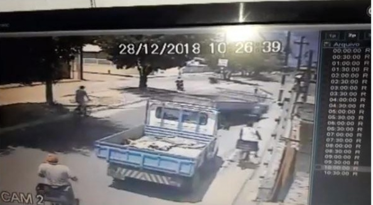 A mulher foi atingida por um caminhão que transporta materiais de construção, o homem que conduzia o veículo não tem carteira de habilitação e prestou esclarecimentos na delegacia.