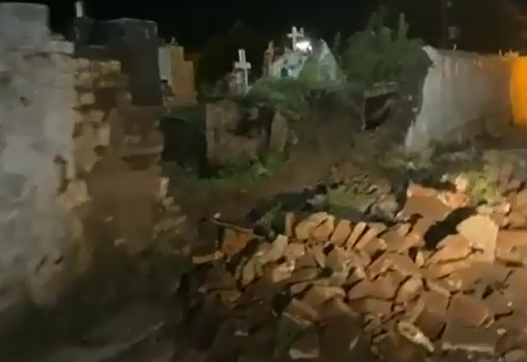 O muro do cemitério público São Miguel desabou na madrugada dessa quarta-feira (10) na cidade de Areia, no Brejo da Paraíba.