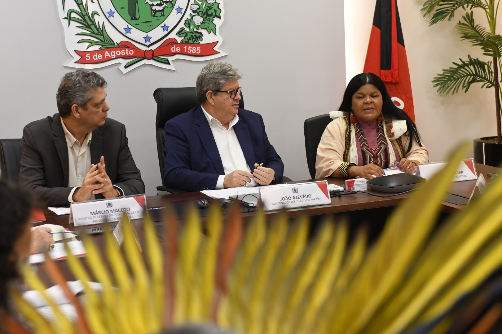O governador João Azevêdo recebeu, nesta terça-feira (13), na Granja Santana, em João Pessoa, a ministra dos Povos Indígenas, Sonia Guajajara, e o ministro da Secretaria-Geral da Presidência da República, Márcio Macedo, ocasião em que foi definido plano de trabalho com o objetivo de homologar as terras indígenas de Monte-Mor, localizadas nos municípios de Rio Tinto e Marcação, no Litoral Norte.