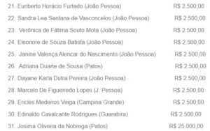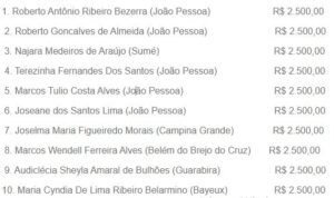 Programa Nota Cidadã realizou, nesta quinta-feira (20), o sorteio do mês de abril. O 40º sorteio contemplou mais 31 ganhadores de dez cidades do Estado: João Pessoa, Campina Grande, Cabedelo, Santa Rita, Bayeux, Sumé, Belém do Brejo do Cruz, Guarabira, Patos e Mulungu. Os ganhadores vão receber um total de R$ 100 mil em prêmios em dinheiro, sendo 30 deles uma premiação de R$ 2,5 mil, enquanto o 31º ganhador, que foi um cidadão do município de Patos, receberá o prêmio especial de R$ 25 mil.