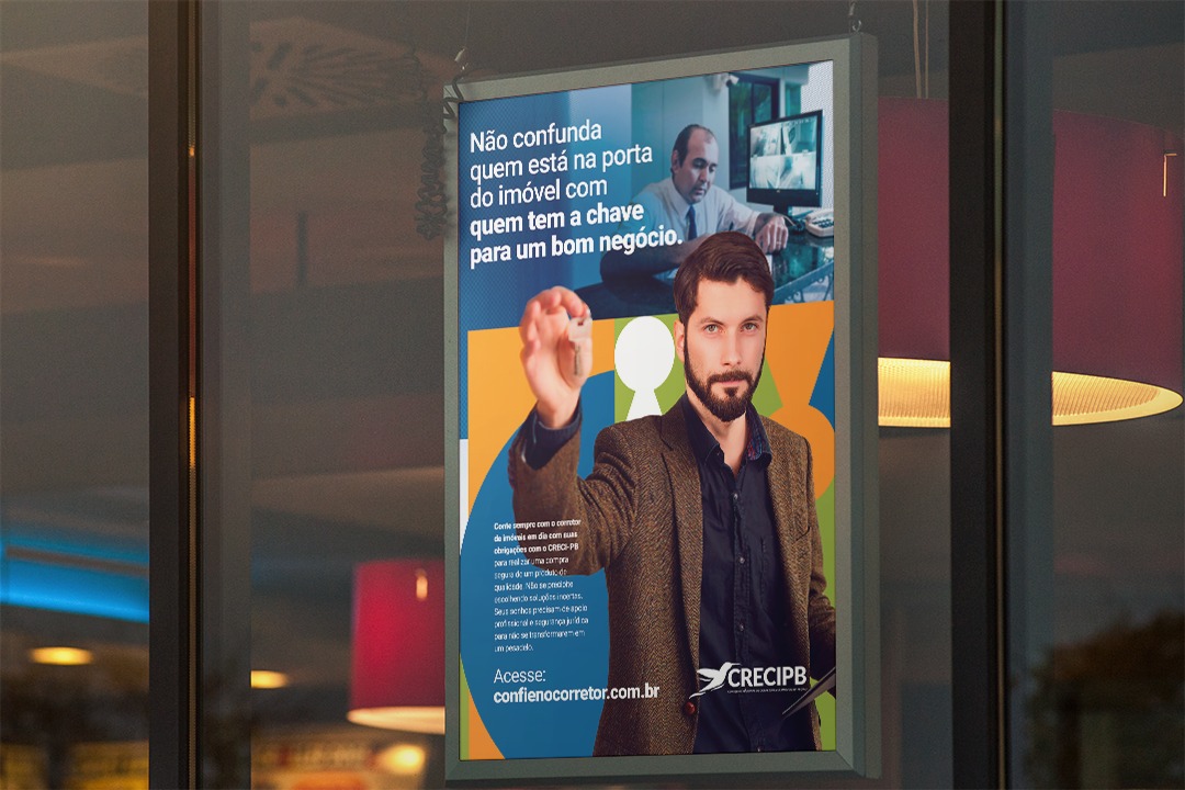 A certeza para o cliente, de segurança no negócio imobiliário e a valorização do corretor de imóveis, profissional qualificado a proporcionar essa garantia são o tema da mais nova campanha publicitária do Creci-PB, que vem sendo veiculada por meio de spot em rádios de todo o estado, bem como por meio das mídias digitais, sob o tema “Não confunda quem está na portaria do imóvel com quem tem a chave para um bom negócio”.