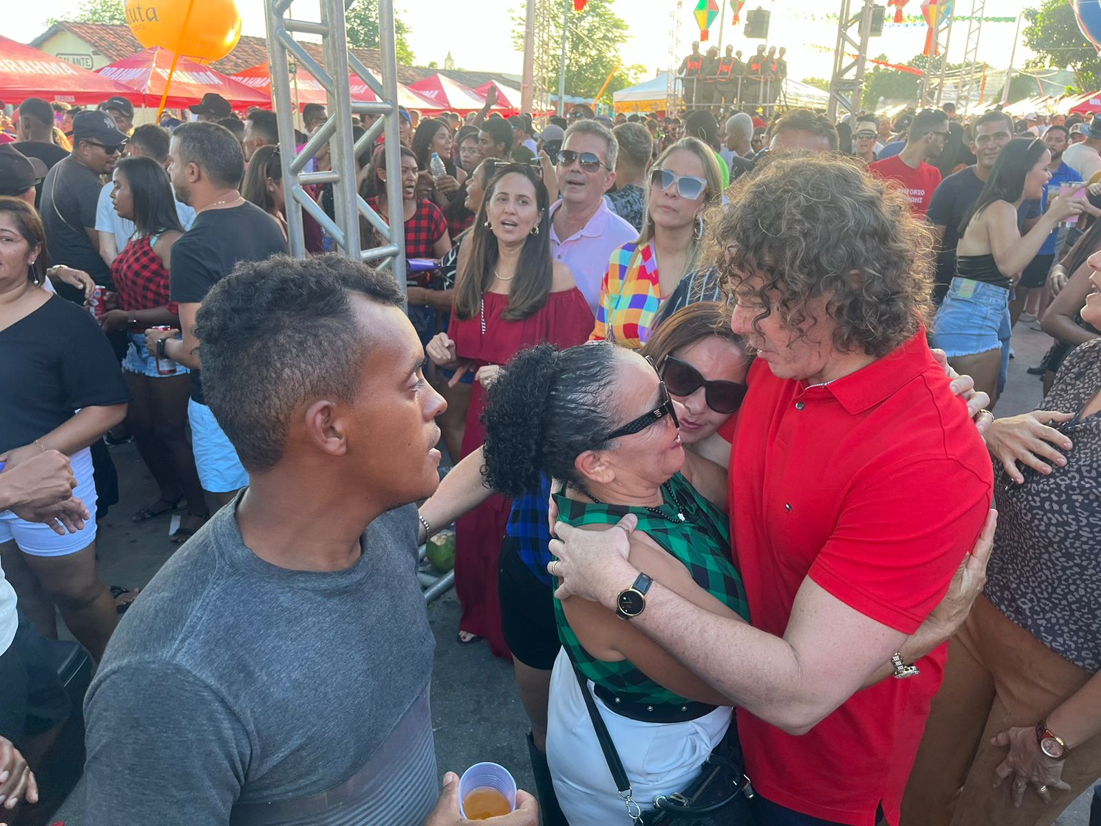 Depois, Veneziano e Ana Claudia seguiram para o distrito de Galante, que este ano recebeu uma estrutura mais arrojada e uma maior e mais diversificada programação de atrações. Ele passeou pela estrutura da festa, dançou forró, conversou com as pessoas e posou para fotos.