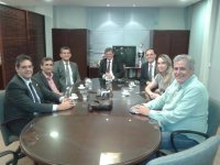 O presidente da Ordem dos Advogados do Brasil, Seccional Paraíba (OAB-PB), Odon Bezerra, e o secretário Geral Adjunto, Nildo Nunes, receberam, na tarde desta segunda-feira (23), uma visita de cortesia da diretoria eleita da Instituição, para o triênio 2016/2018, composta pelos advogados Paulo Maia (Presidente), Raoni Vita (vice-presidente), Assis Almeida (secretário geral) e a tesoureira Tainá de Freitas. O presidente reeleito da Caixa de Assistência dos Advogados (CAA-PB), Carlos Fábio, também participou da reunião.