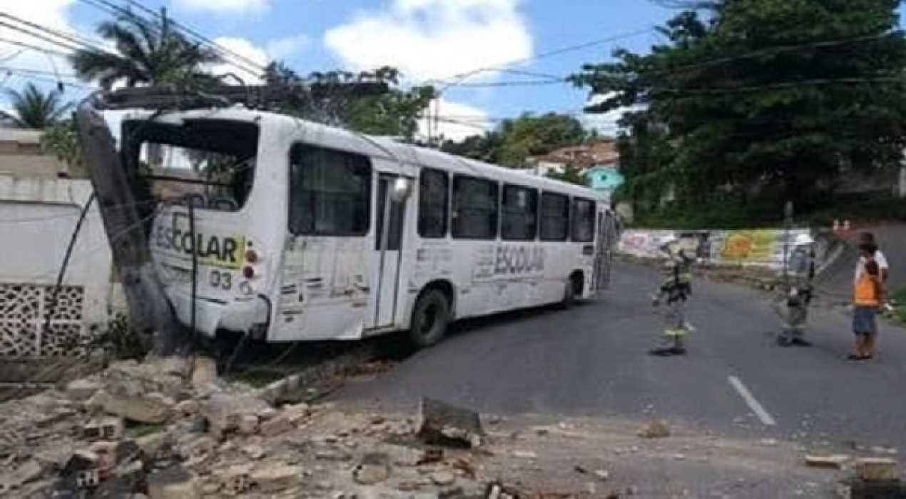 Na manhã deste sábado (29), um ônibus escolar colidiu e acabou derrubando um poste de energia no bairro do Roger, na Zona Norte de João Pessoa.