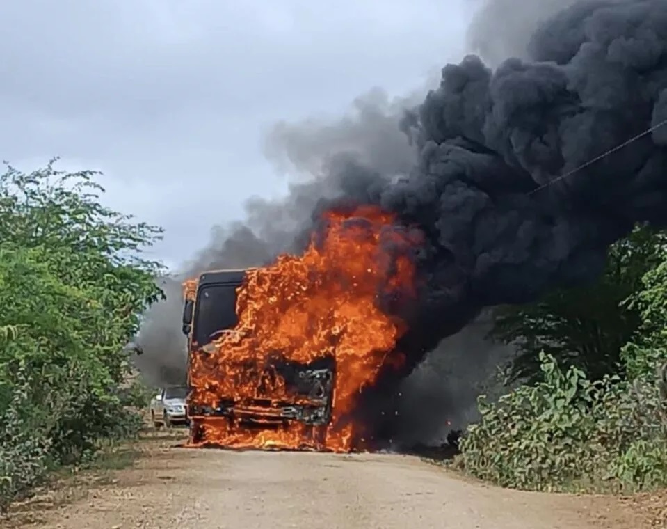Na manhã desta quinta-feira (27) um ônibus escolar pertencente a Prefeitura de Barra de São Miguel, no Cariri paraibano, pegou fogo em uma estrada na zona rural do município.