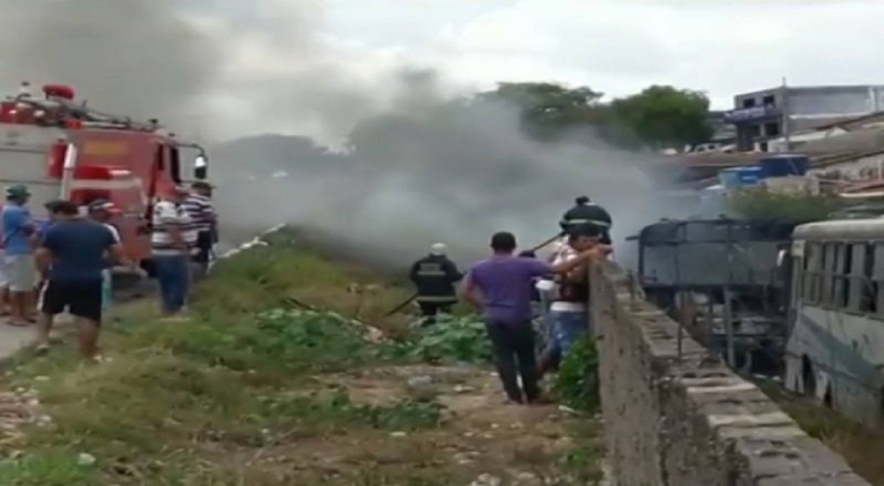 Susto! Um incêndio pegou fogo em uma garagem de uma empresa de ônibus desativada, no Distrito de São José da Mata, em Campina Grande.