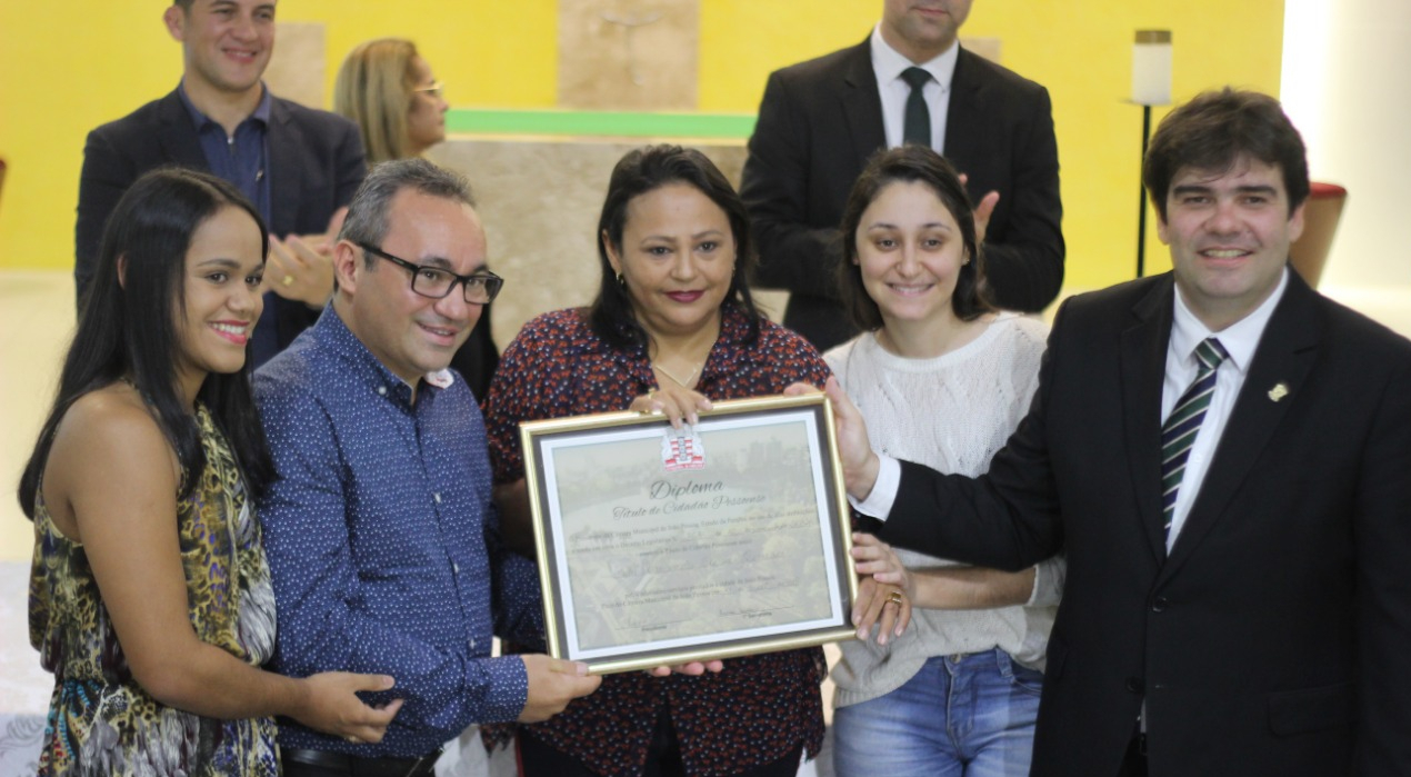 O padre Marcondes Menezes recebeu, na noite desta sexta-feira (31), das mãos do vereador Eduardo Carneiro (PRTB) título de cidadania pessoense outorgado pela Câmara Municipal de João Pessoa, durante sessão solene que aconteceu na Paróquia Menino Jesus de Praga, no bairro dos Bancários, Zona Sul da Capital. A propositura foi apresentada em 2014 pelo então vereador Djanilson da Fonseca.