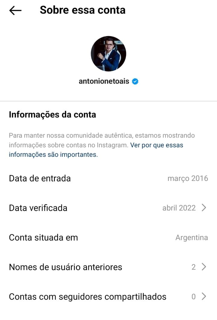 Ao verificar as informações da conta de ‘Toin’, como é conhecido, é possível ver que em “conta situada em” está o nosso país vizinho.