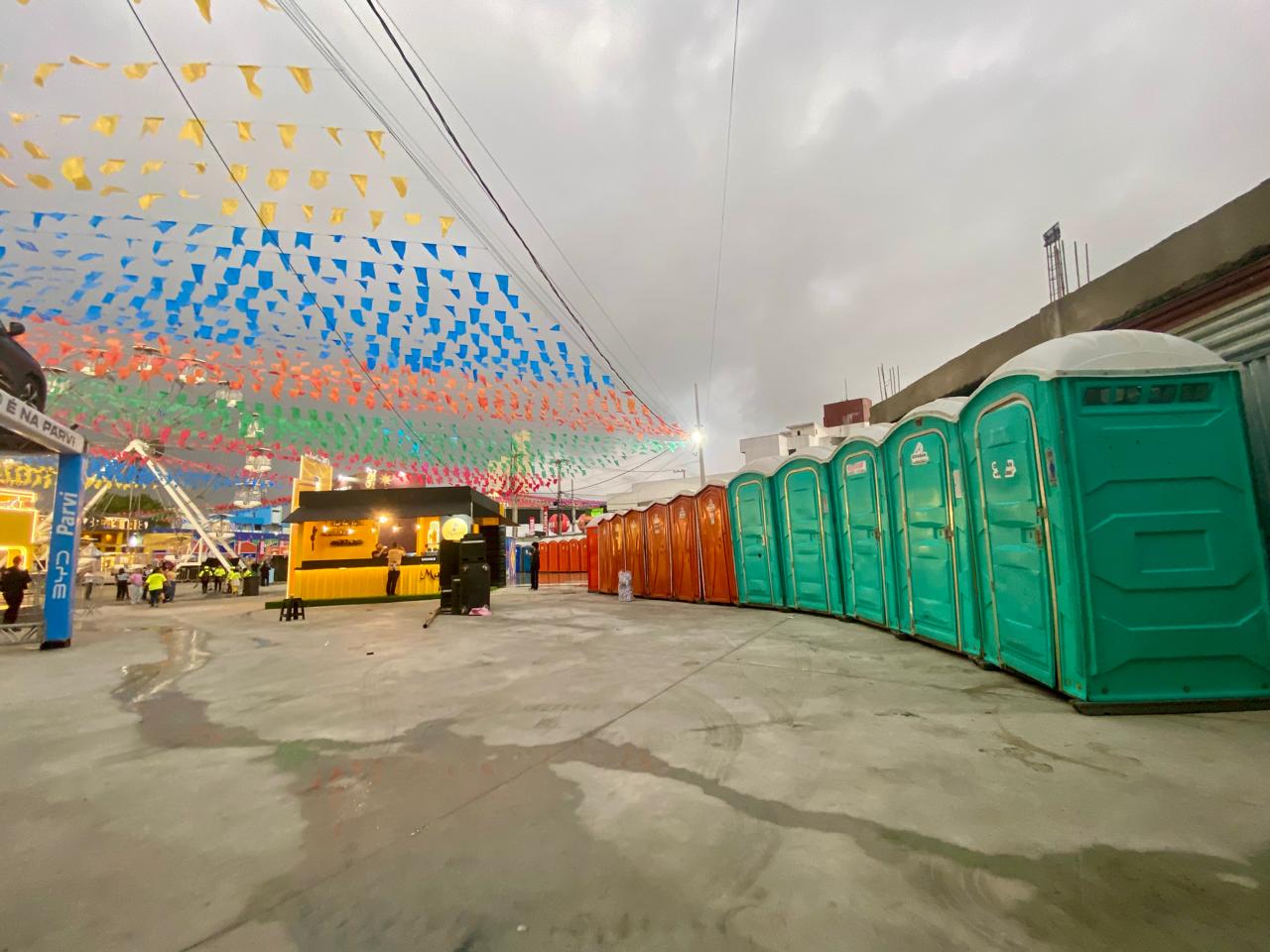 A Arte Produções está instalando mais 70 banheiros químicos para toda a área do Parque do Povo. Cerca de 50 aparelhos já chegaram nesta quarta-feira (5), alguns instalados na área das ativações das marcas patrocinadoras do Maior São João do Mundo, outros próximo à Pirâmide do Parque do Povo.