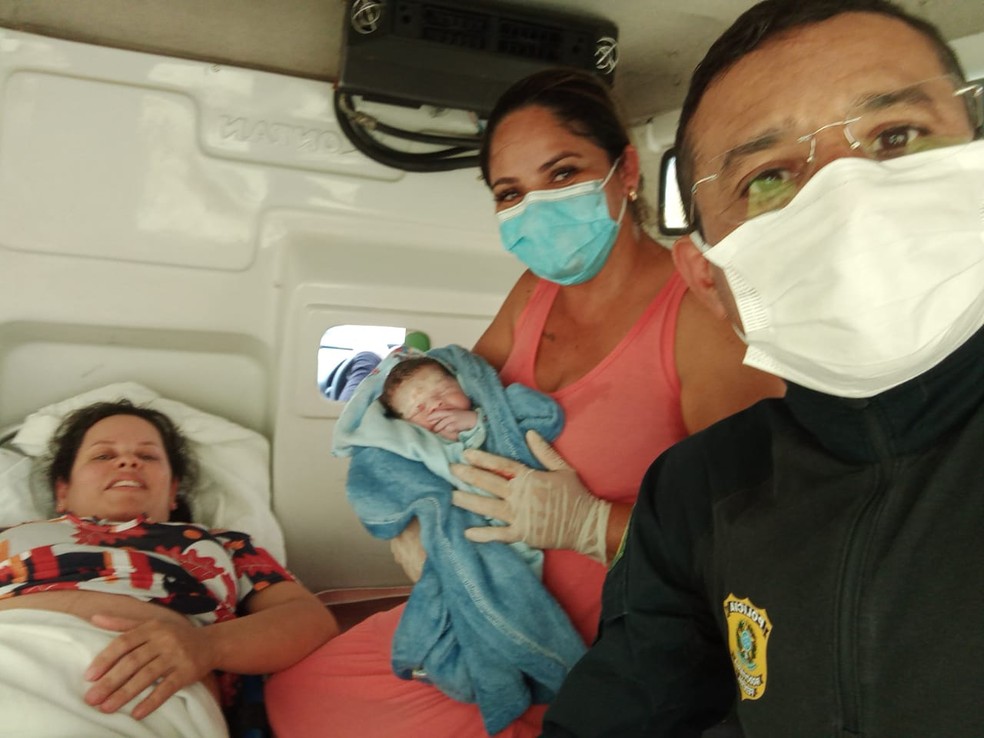 Em trabalho de parto, a mãe deu à luz ali mesmo, na unidade da PRF, com a ajuda de um policial, que também é médico e estava de plantão, e de uma enfermeira.