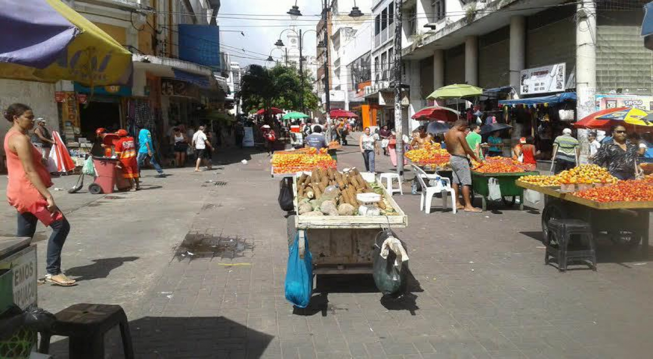 À medida que se aproximam as festas de final de ano, aumenta o número de vendedores ambulantes nas ruas do Centro de João Pessoa. A área central da cidade, nos cruzamentos das Avenidas Desembargador Souto Maior e Santos Dumont, e Rua Santos Elias com a via do Parque Solon de Lucena, está tomada por ambulantes que ocuparam as calçadas. Com isso, quem precisa caminhar pelo local tem menos espaço. Nesses pontos é possível encontrar uma variedade de produtos comercializados, desde frutas e verduras a utensílios domésticos.