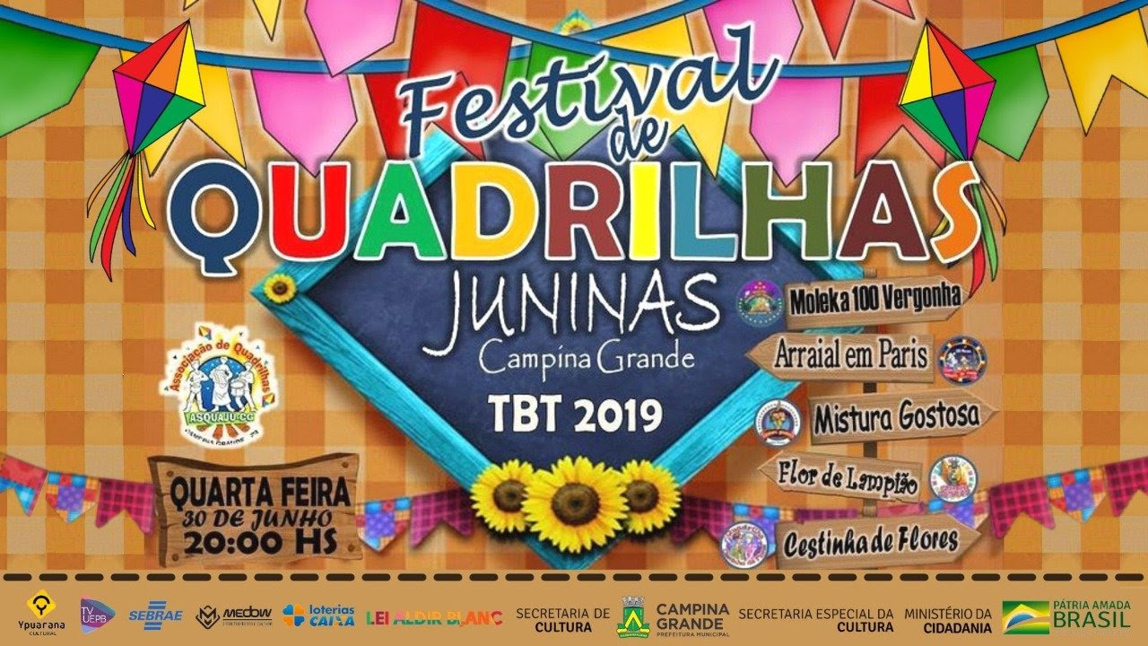 A Prefeitura Municipal de Campina Grande, por meio da Secretaria de Cultura, dá continuidade ao calendário de contrapartidas da Lei Aldir Blanc com um dos contemplados pelo Edital 008 – Festivais de Arte e, nesta quarta-feira, 30, promove uma live do Festival de Quadrilhas Juninas. O evento é a contrapartida da Associação de Quadrilhas Juninas de Campina Grande e da Região Agreste (Asquaju), que em 2019 foi contemplada pela lei do Governo Federal, de incentivo à classe artística, devido à pandemia do novo coronavírus.