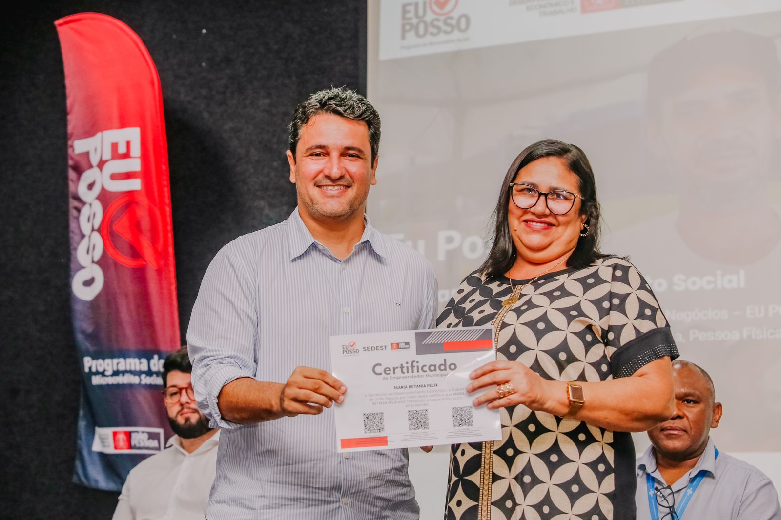 A Prefeitura de João Pessoa, por meio da Secretaria de Desenvolvimento Econômico e Trabalho (Sedest), entregou, na manhã desta quarta-feira (24), 86 Certificados de Empreendedor Municipal (CEM), aos contemplados pelo programa ‘Eu Posso’, no edital 001/2023. Ao todo, foi repassado o montante de R$ 611,8 mil em microcréditos para empreendedores já formalizados como pessoa jurídica, bem como para os que ainda atuam como pessoa física.
