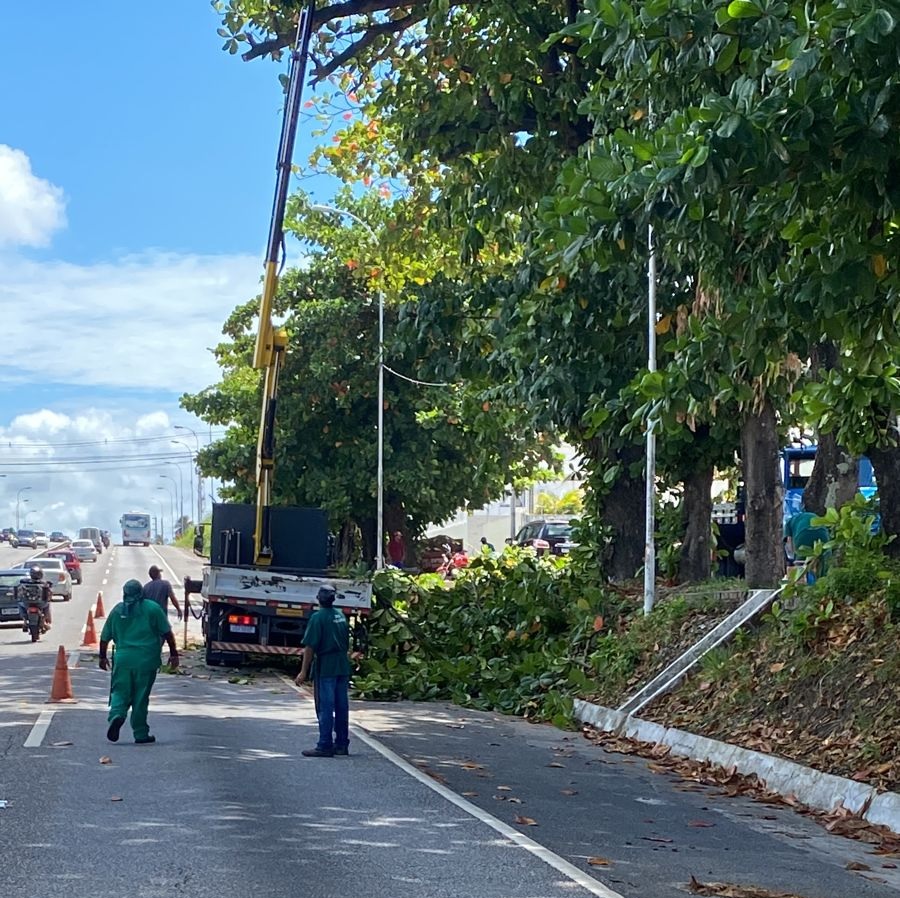 Em João Pessoa, no km 17 da BR-230, sentido Cabedelo, está ocorrendo a poda emergencial de árvores.