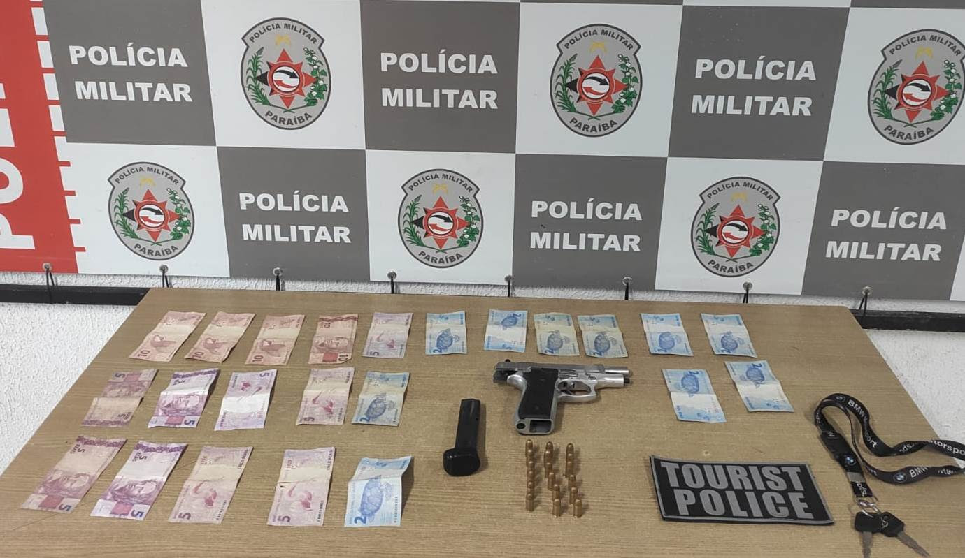 O acusado, de 25 anos de idade, estava com uma pistola calibre 380 na cintura e foi abordado pelos policiais do Batalhão Especializado em Policiamento Turístico (BEPTur), quando transitava em uma motocicleta. “Na abordagem, ele se identificou com um nome falso, mas conseguimos chegar a verdadeira identidade dele. Constatamos que contra ele a Justiça já havia expedido quatro mandados de prisão, incluindo pelos crimes de roubo e adulteração veicular. Descobrimos ainda que ele está sendo indiciado em oito inquéritos, o que demonstra sua alta periculosidade”, explicou o comandante do BEPTur, major Bruno.