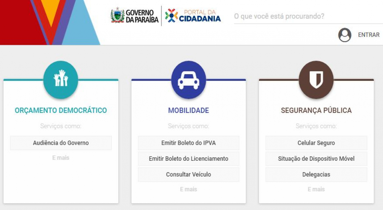 O Governo do Estado, por meio da Companhia de Processamento de Dados da Paraíba (Codata), lançou, nesta segunda-feira (29), o Portal da Cidadania, que disponibiliza vários serviços para facilitar a vida da população. Na página portaldacidadania.pb.gov.br é possível encontrar ícones relacionados à Mobilidade, Segurança Pública, Governo, Cultura, Esporte, Saúde, Meio Ambiente, Ouvidoria, Utilidade Pública, Guias de Pagamento, Turismo, Concursos, entre outros.